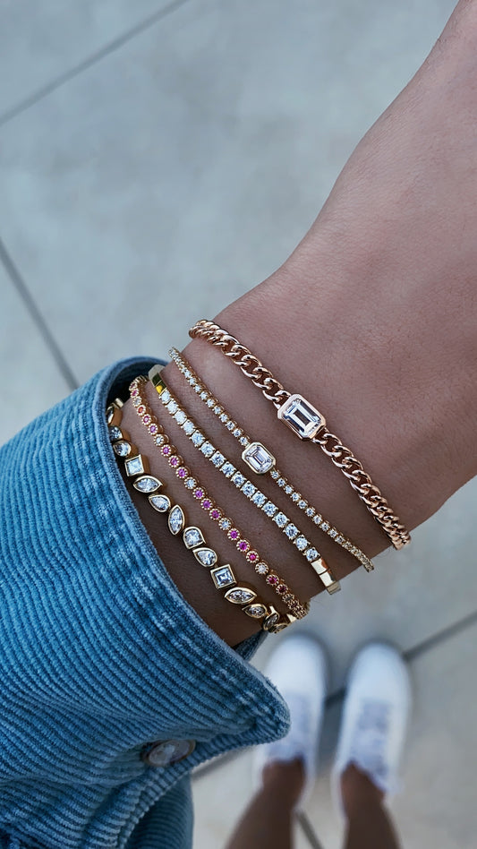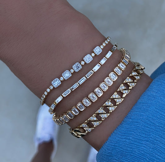 14kt gold emerald cut diamond bezel whisper tennis bracelet