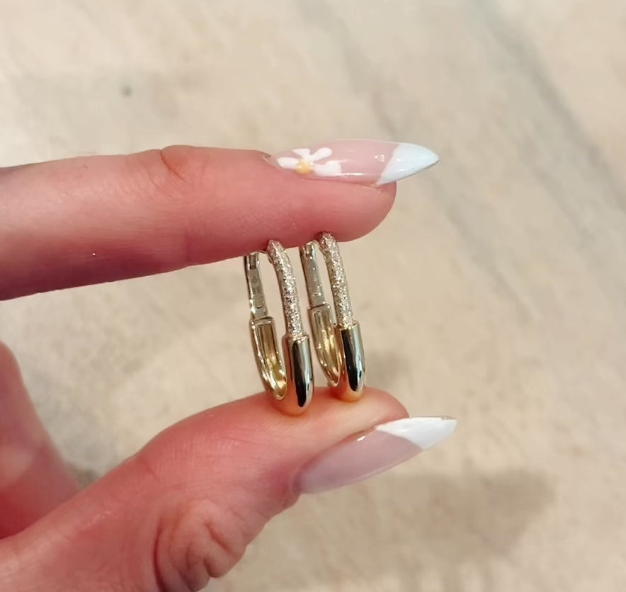14kt gold and diamond large safety pin hoops