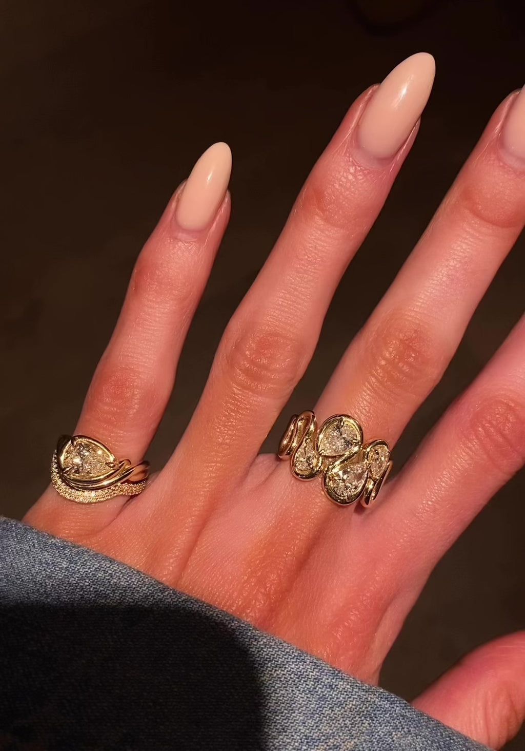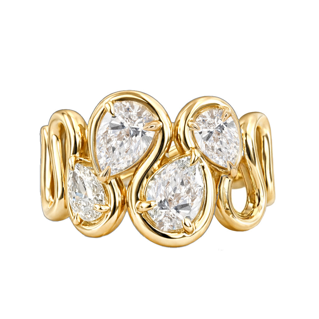 Rooted in the fluid poetry of the sea, the Marea collection captures the ocean’s organic lines and hidden treasures. It's flowing silhouettes evoke the gentle crest of waves, translating the eternal allure of the shore into refined, sculptural gold and diamond forms.