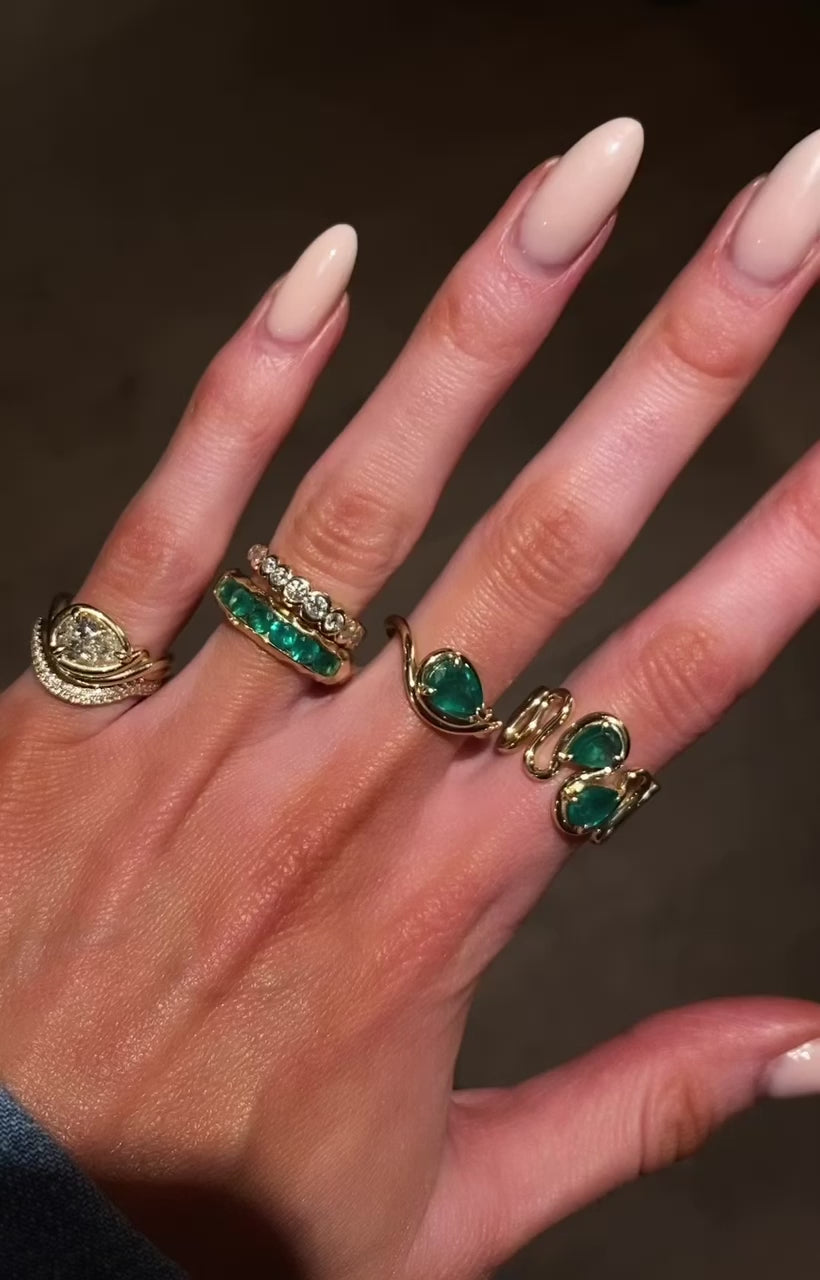 14kt gold two emerald Marea ring