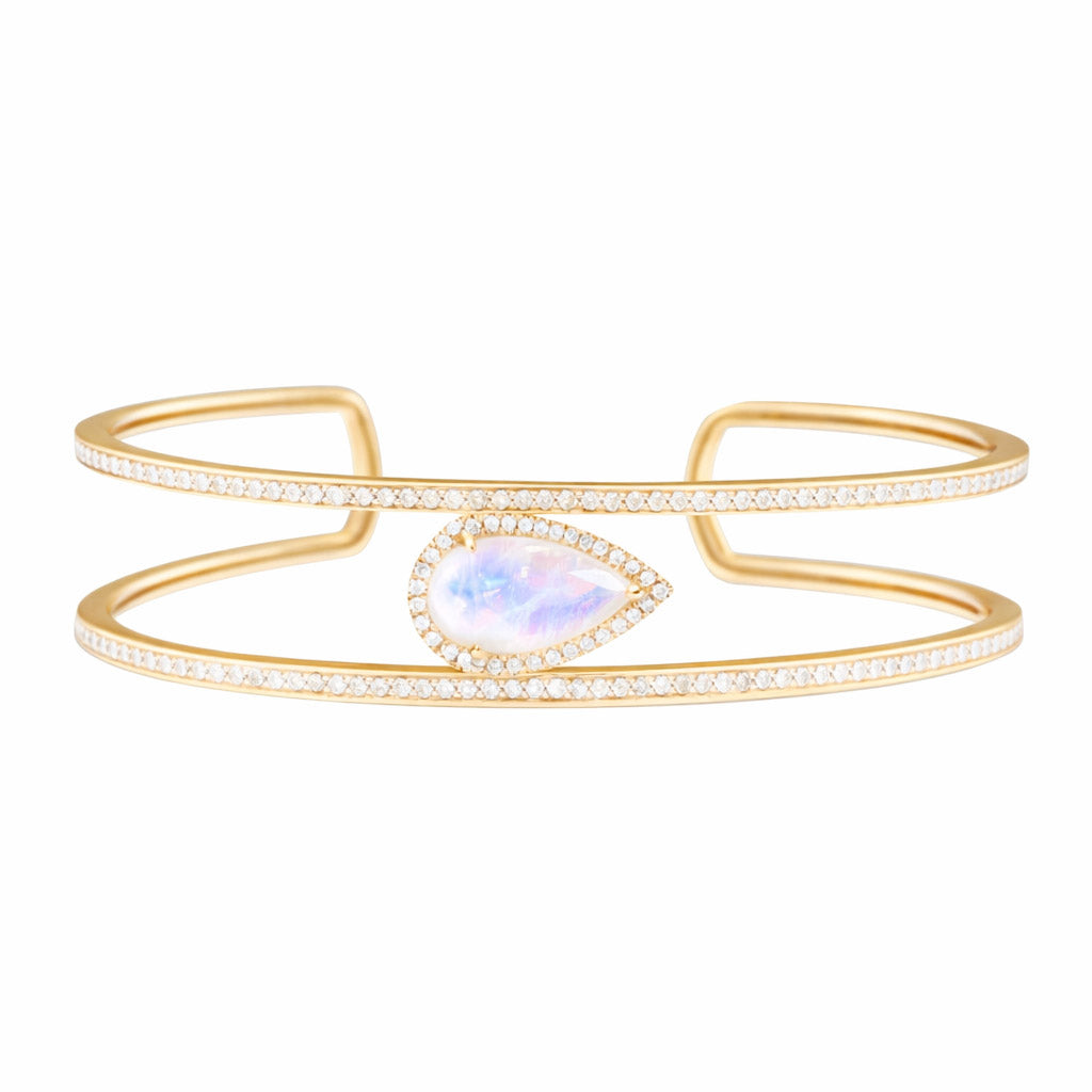 14kt gold two diamond row moonstone cuff
