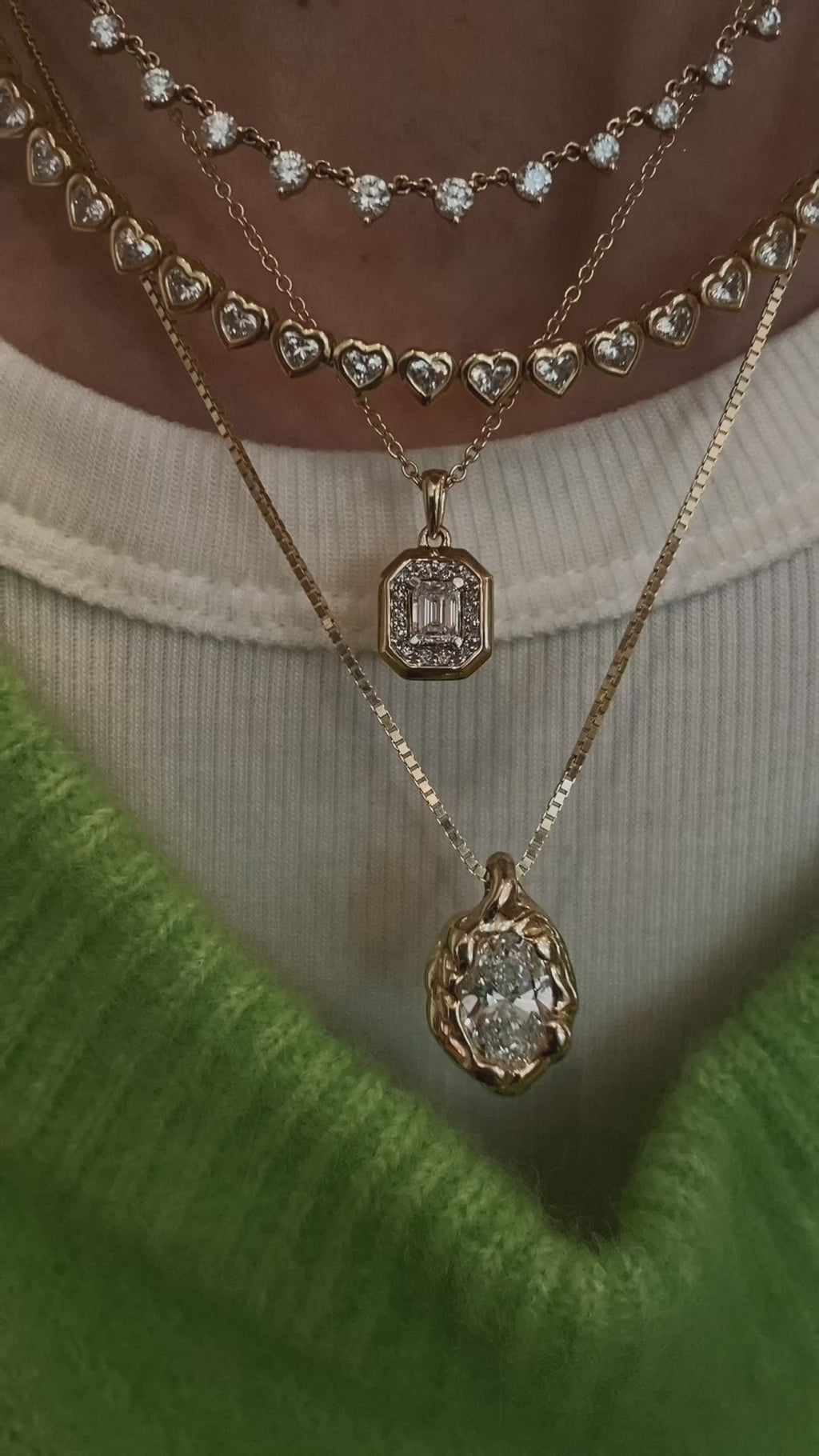 14kt gold molten diamond bezel necklace on 18 inch chain