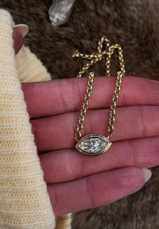 14kt gold two step marquise diamond bezel necklace on adjustable 15 - 16 inch chain