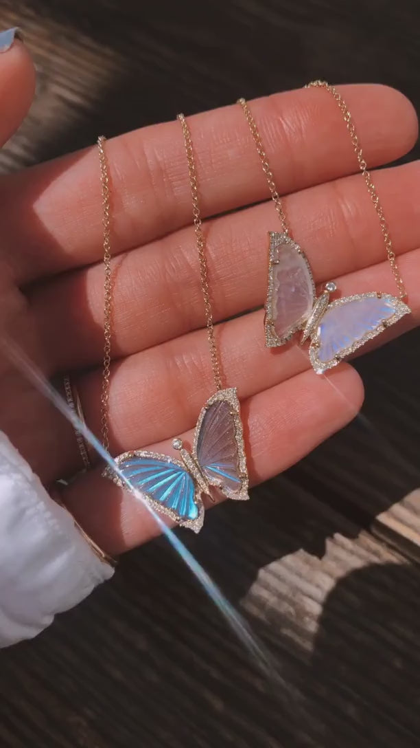 14kt gold and diamond labradorite baby butterfly necklace on adjustable 16 -18 inch chain