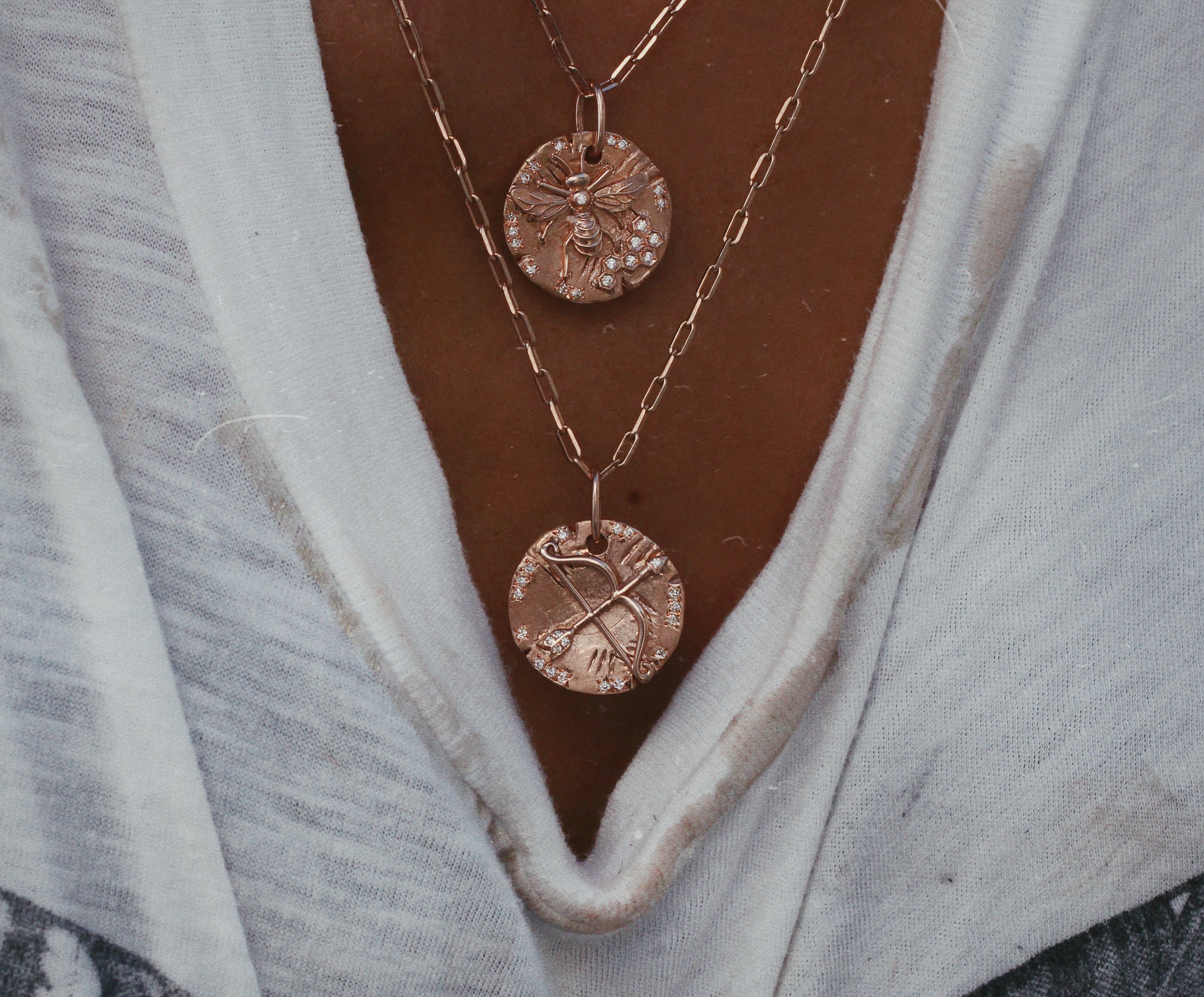 14kt gold and diamond warrior coin necklace on 18 inch chain
