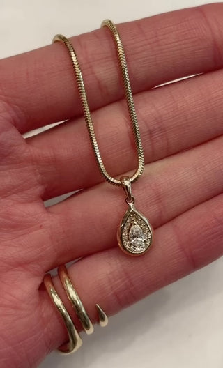 14kt gold diamond water drop necklace on adjustable 16 - 18 inch chain