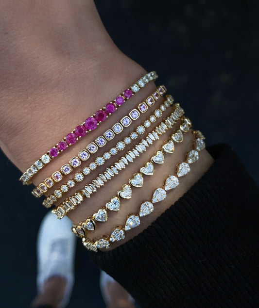 14kt gold diamond and pink sapphire grande encrusted hoop