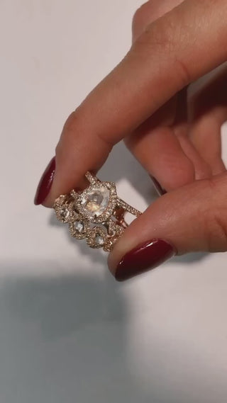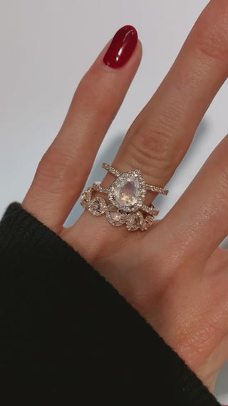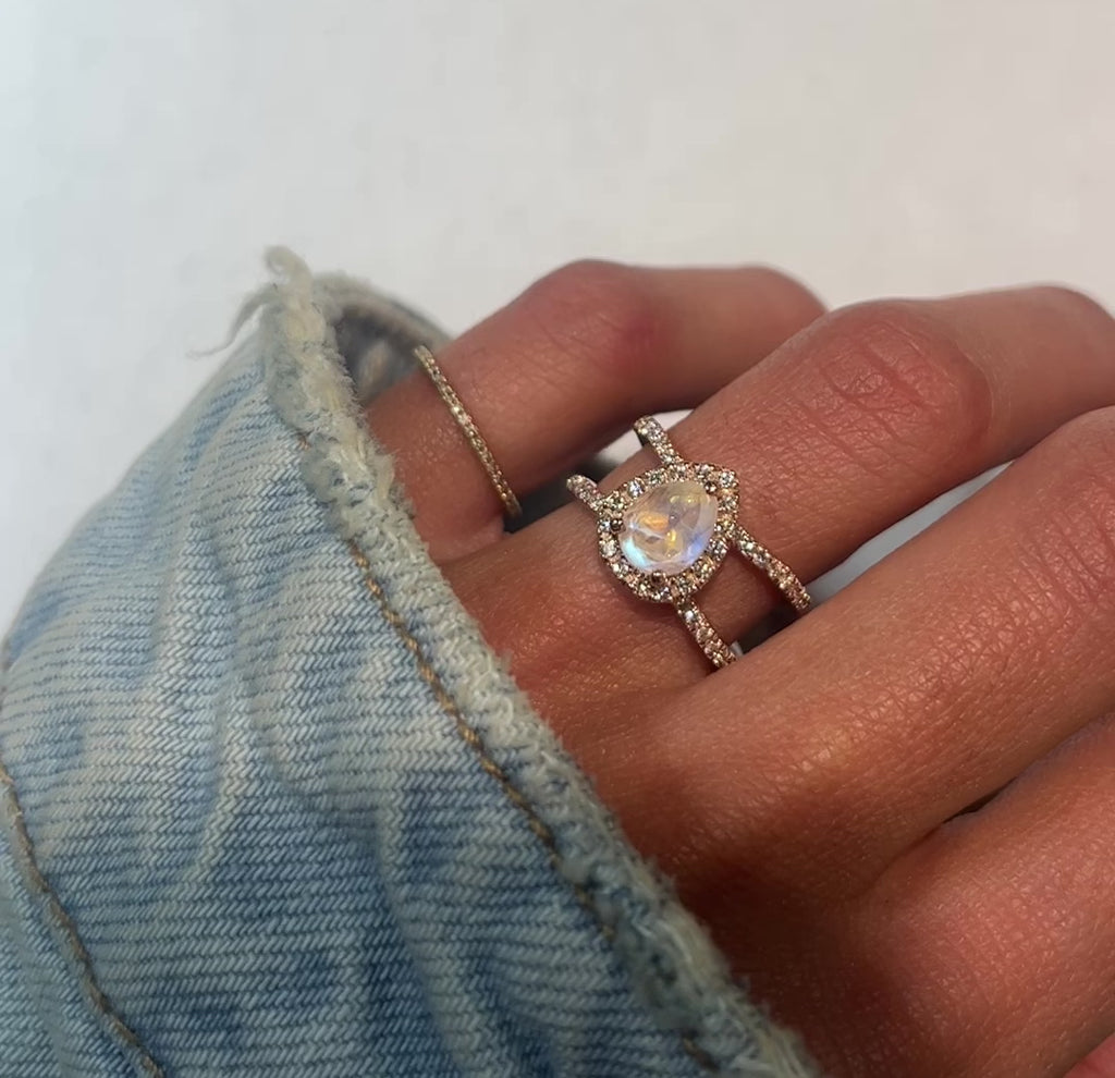 14kt gold and diamond large Double Band Teardrop Moonstone ring