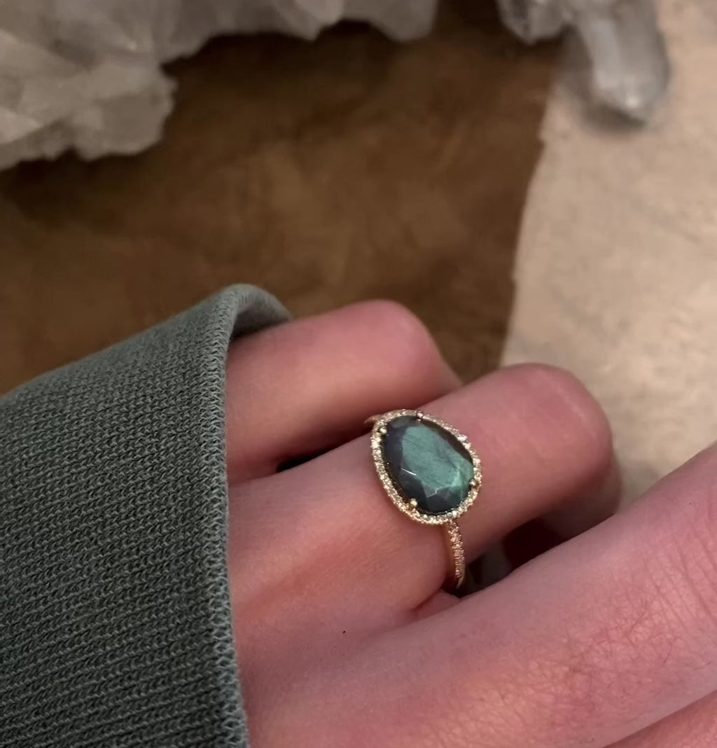 14kt gold and diamond single band labradorite ring