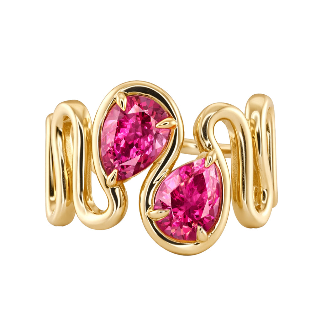 14kt gold two pink spinel Marea ring