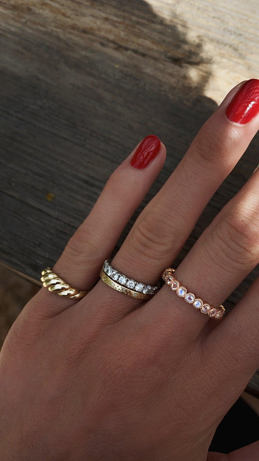14kt gold moonstone bezel band