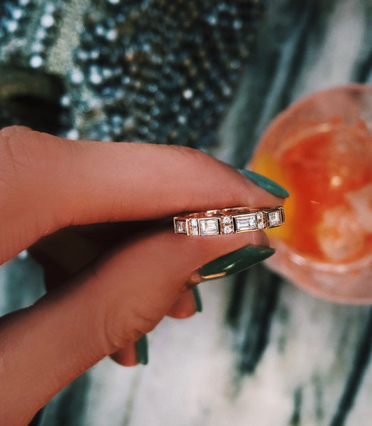 14kt gold half eternity baguette diamond ring