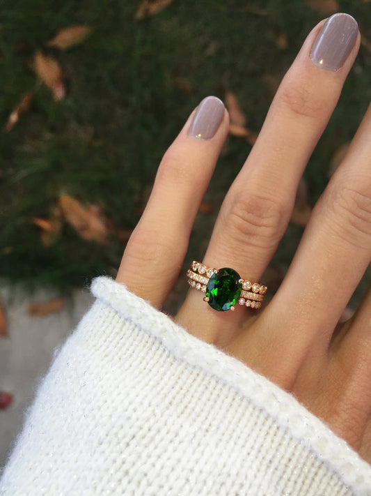 14kt gold and diamond chrome green tourmaline solitaire eternity ring