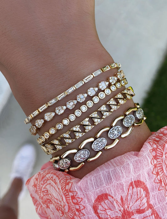 14kt gold jagged baguette diamond tennis bracelet
