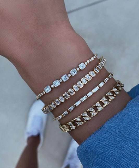 14kt gold emerald cut diamond bezel tennis bracelet