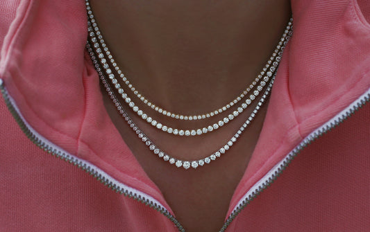 14kt gold graduated round diamond tennis necklace