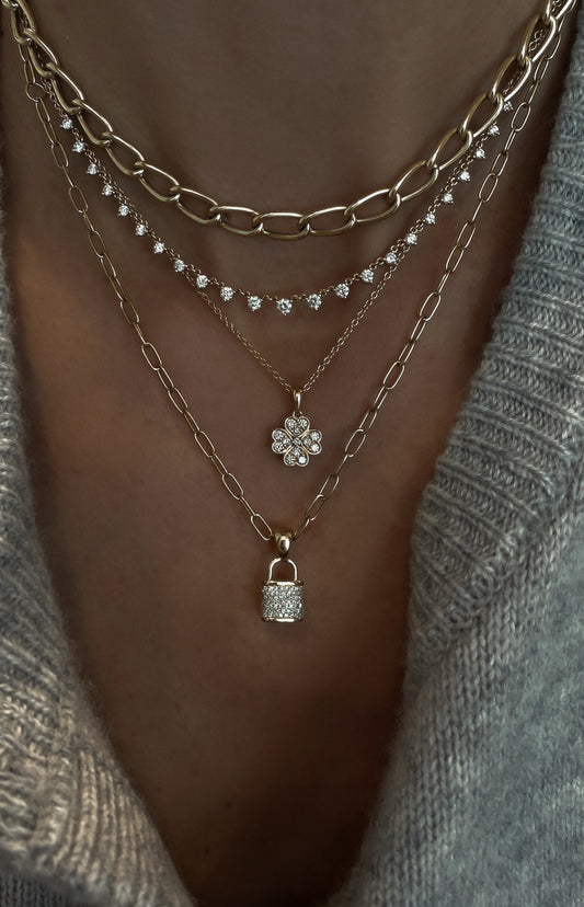 14kt gold and diamond baby cuban chain link necklace