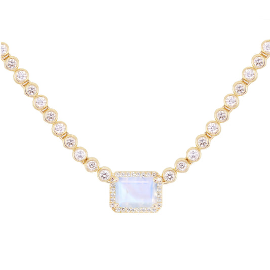 14kt gold turquoise and diamond heart bezel tennis necklace