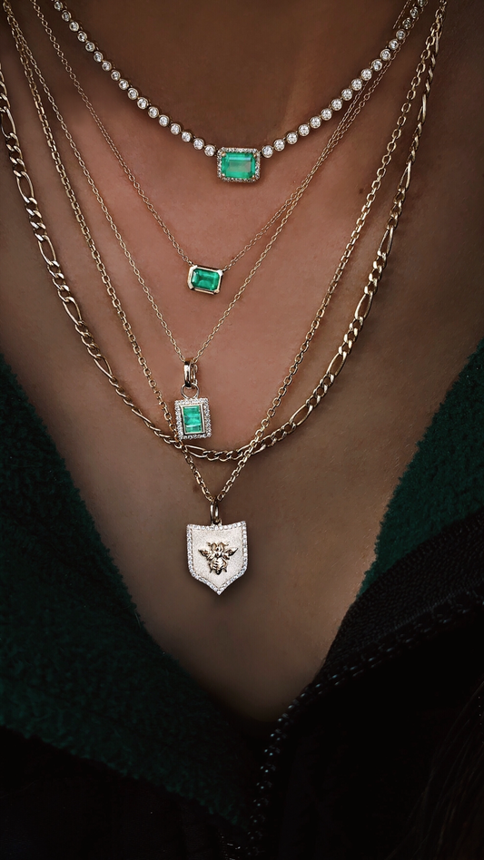 14kt gold emerald bezel necklace
