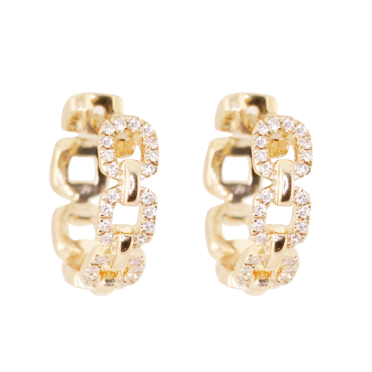 14kt gold and diamond mini chain hoop earrings