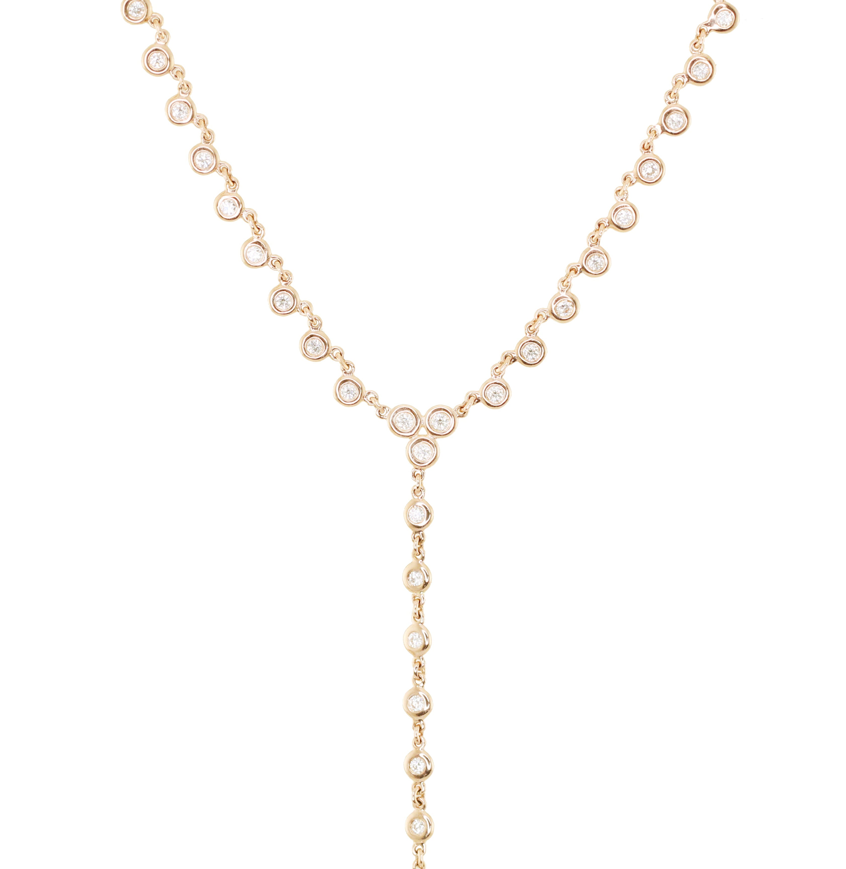 14kt gold full diamond bezel lariat necklace