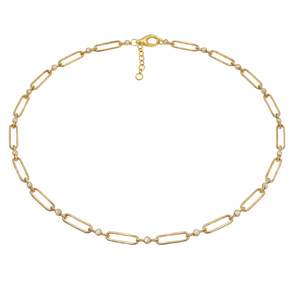 14kt gold diamond bezel paperclip necklace adjustable 14 - 16 inch chain