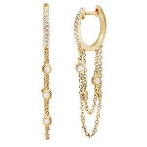 14kt gold and diamond bezel drip hoop earrings