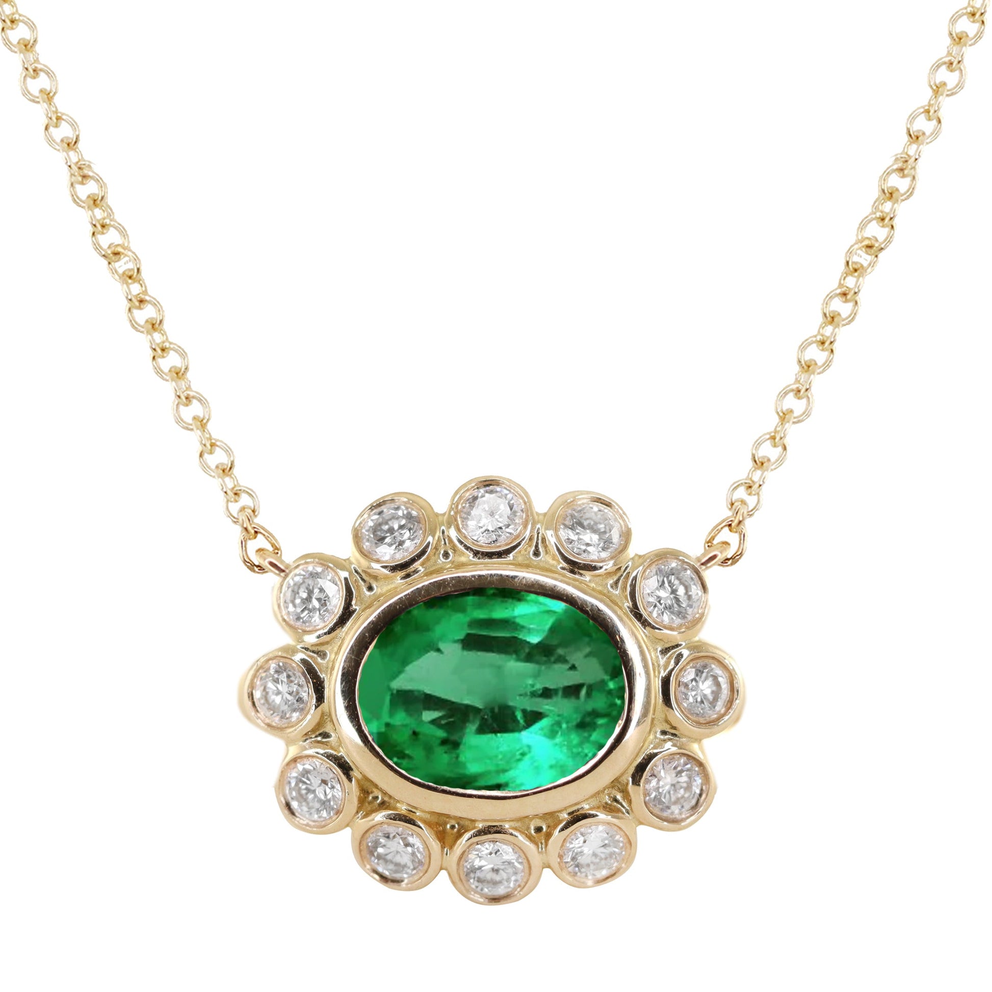 14kt gold and diamond emerald bezel burst necklace on 16 - 18 inch chain
