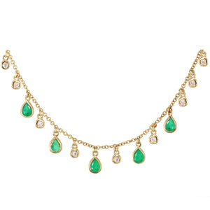 14kt gold and diamond emerald teardrop drip necklace