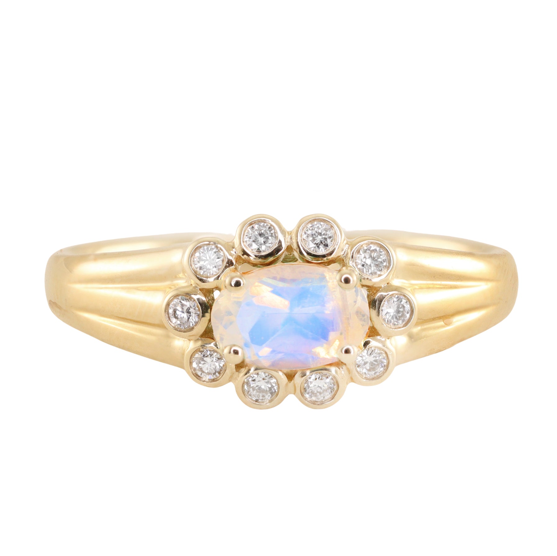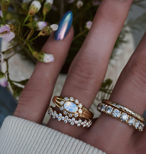 14kt gold and diamond moonstone bezel baby burst ring