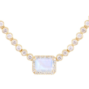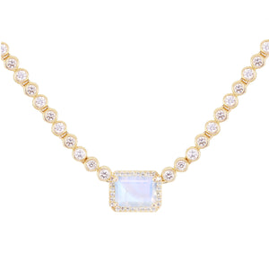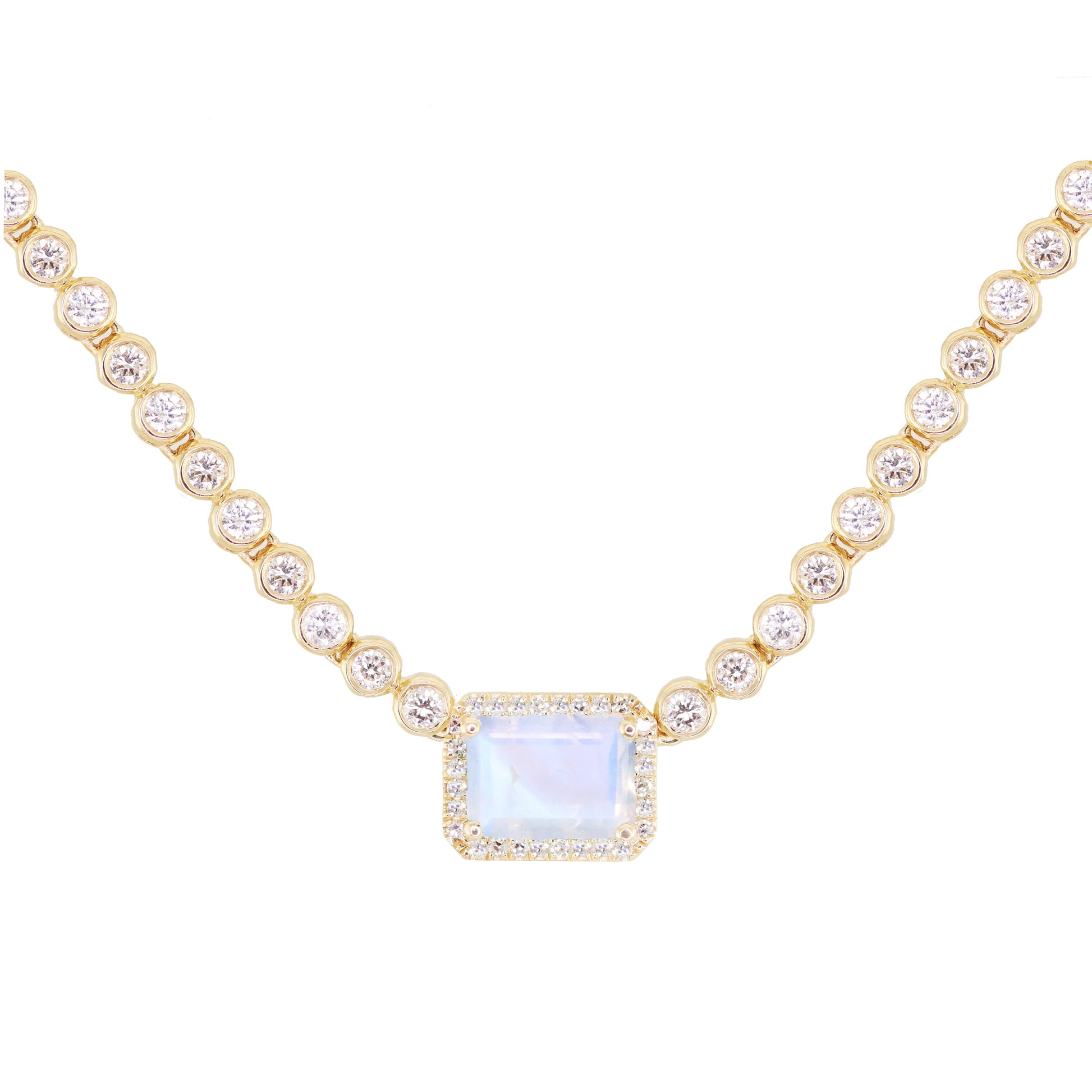 14kt gold and diamond moonstone bezel necklace on adjustable 14 - 16 inch chain