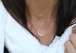 14kt gold and diamond starlit crescent moon necklace