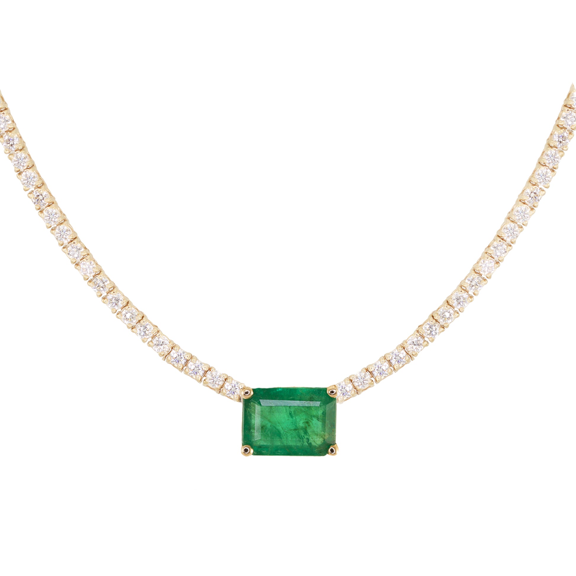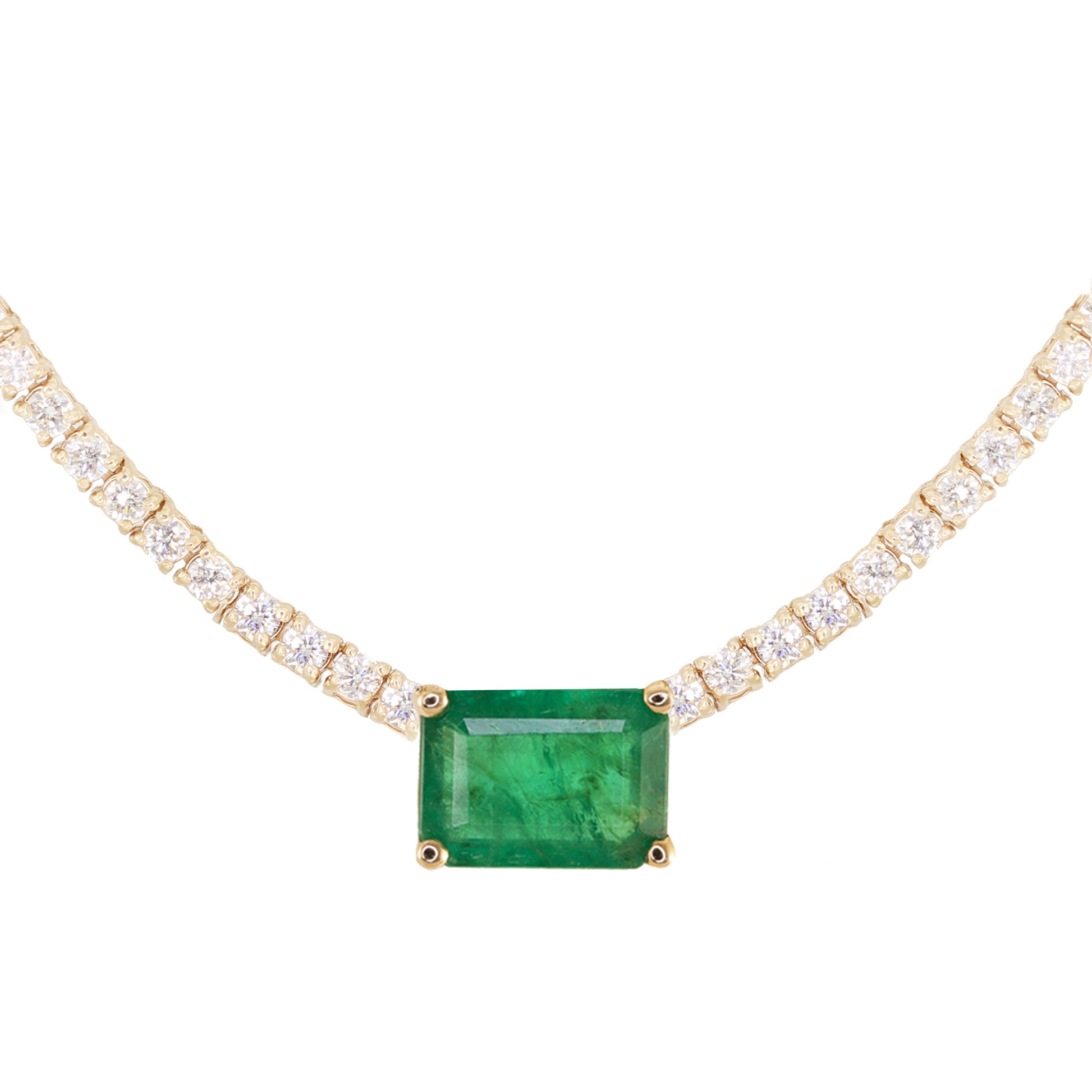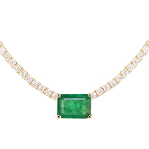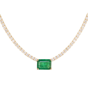 14kt gold and diamond solitaire emerald tennis necklace