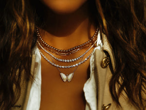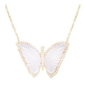 14kt gold and diamond white mother of pearl baby butterfly necklace