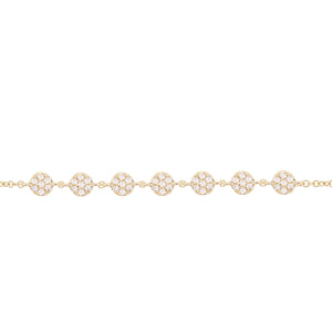 14kt gold diamond disk row bracelet on adjustable 6 - 7 inch chain
