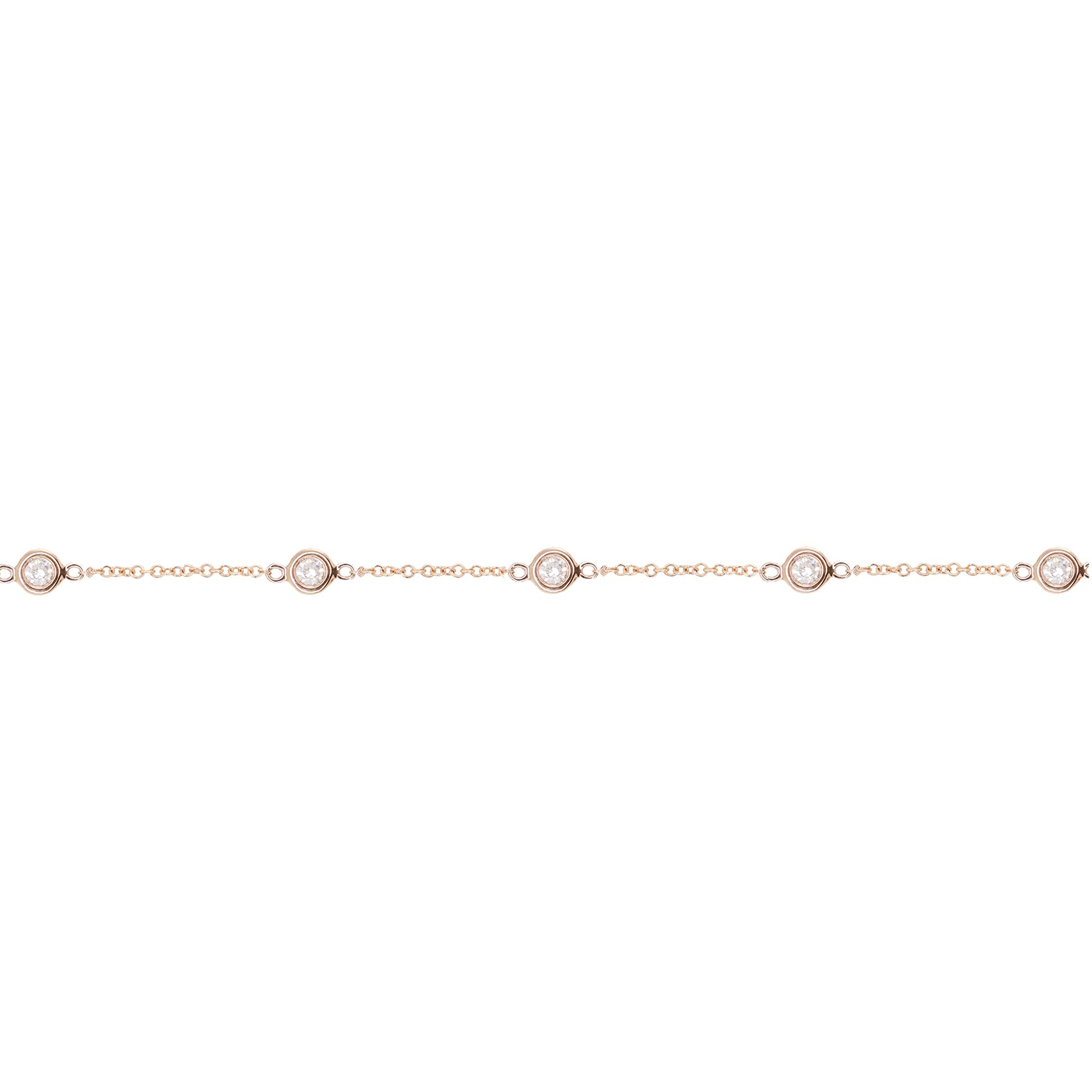 14kt gold seven diamond bezel bracelet on adjustable 6 - 7 inch chain