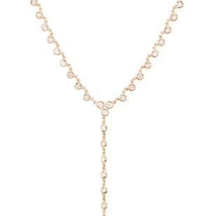 14kt gold full diamond bezel lariat necklace on adjustable 16 - 18 inch chain