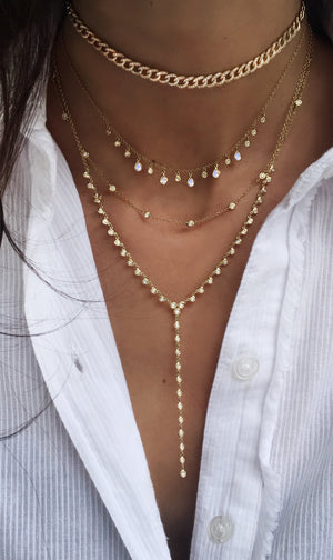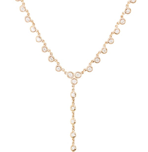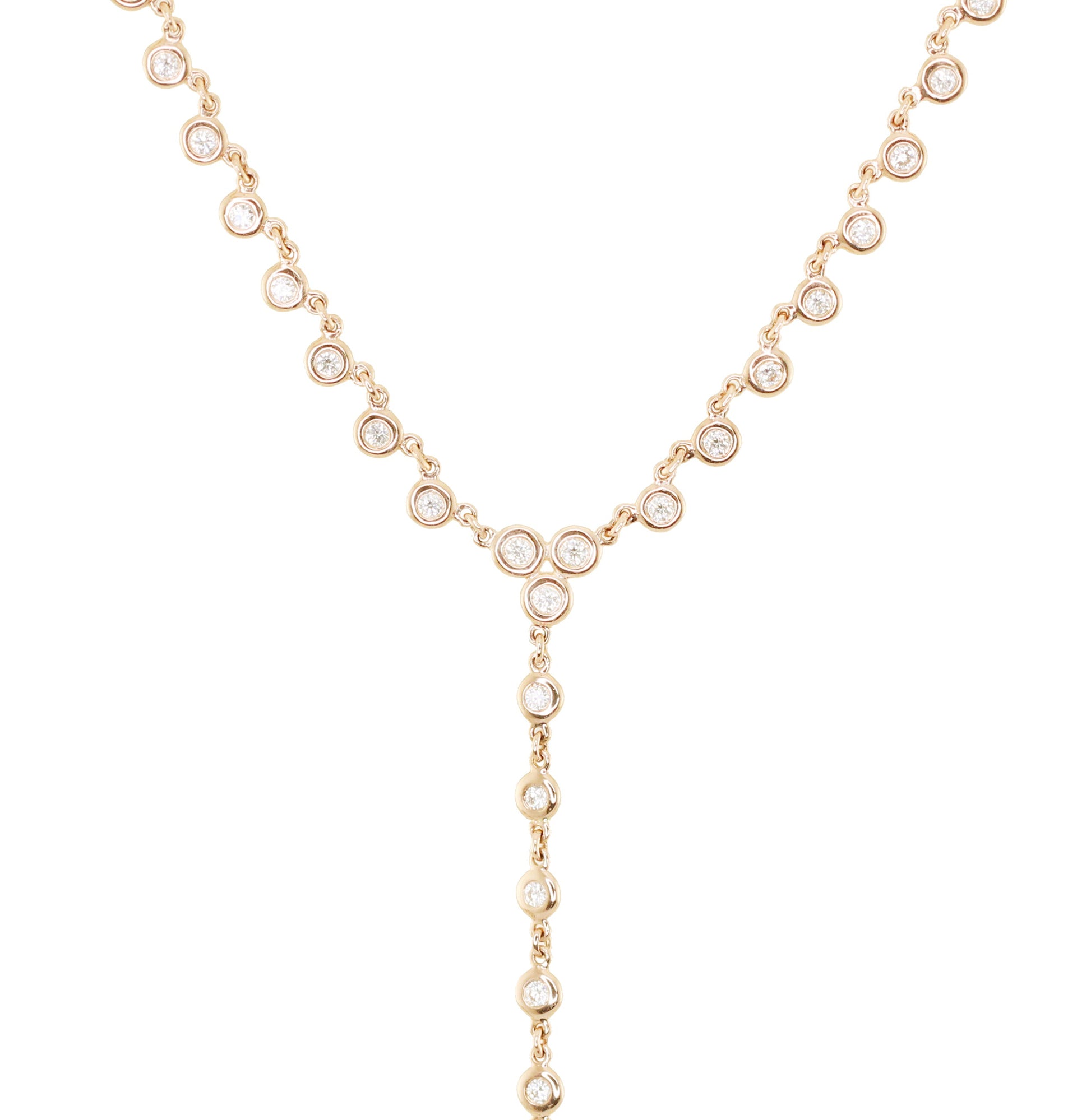 14kt gold full diamond bezel lariat necklace on adjustable 16 - 18 inch chain