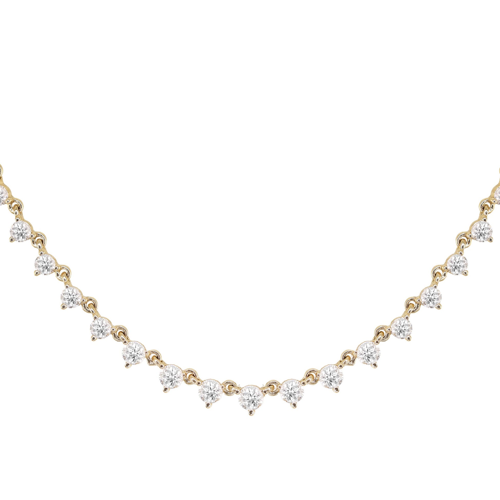14kt gold graduated three prong diamond choker necklace on adjustable 14 - 16 inch chain