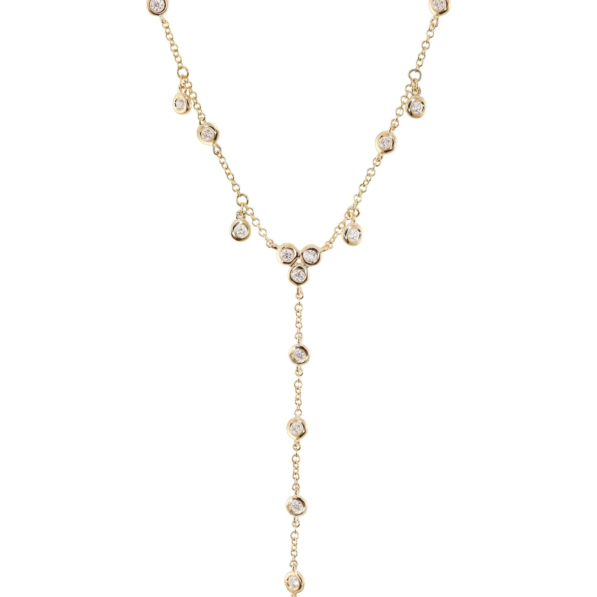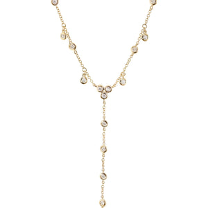 14kt gold single row diamond bezel drip lariat necklace