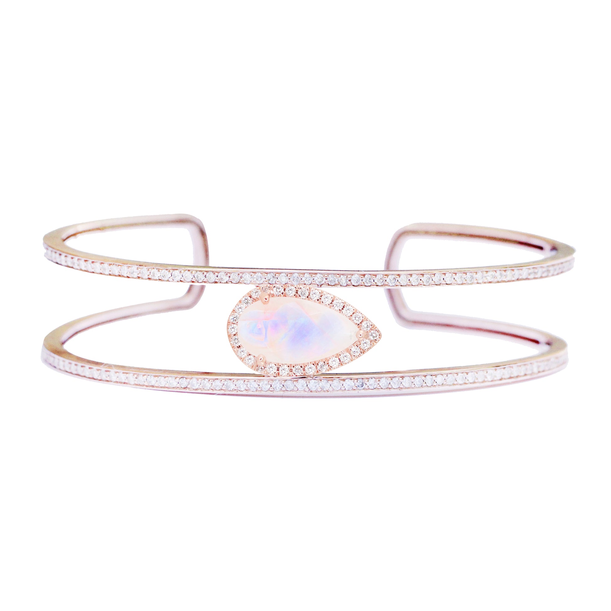 14kt gold two diamond row moonstone cuff