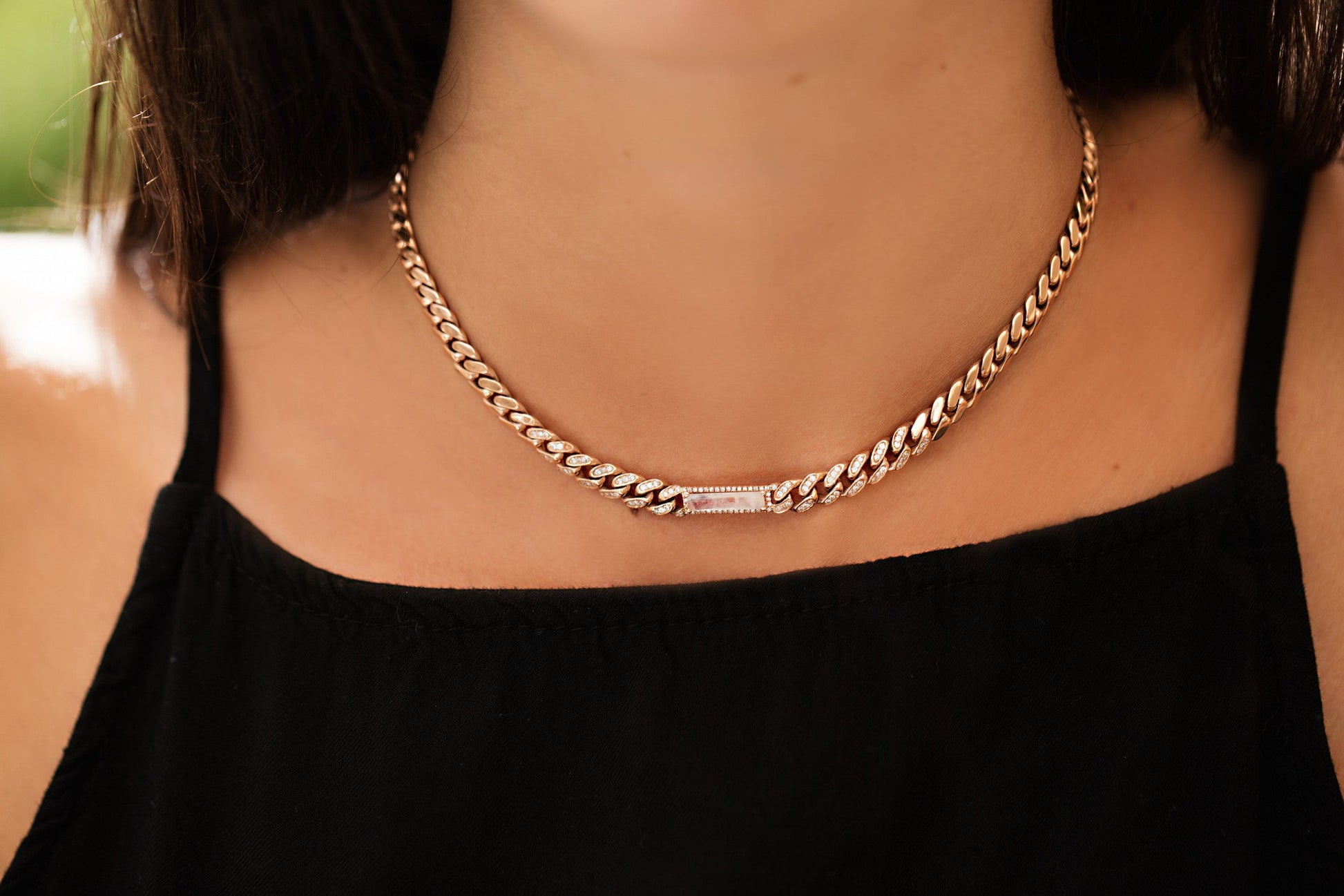 14kt gold and diamond chain link moonstone choker on 15 inch chain