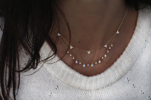 14kt gold and diamond moonstone teardrop drip necklace on 14 -16 inch chain