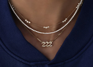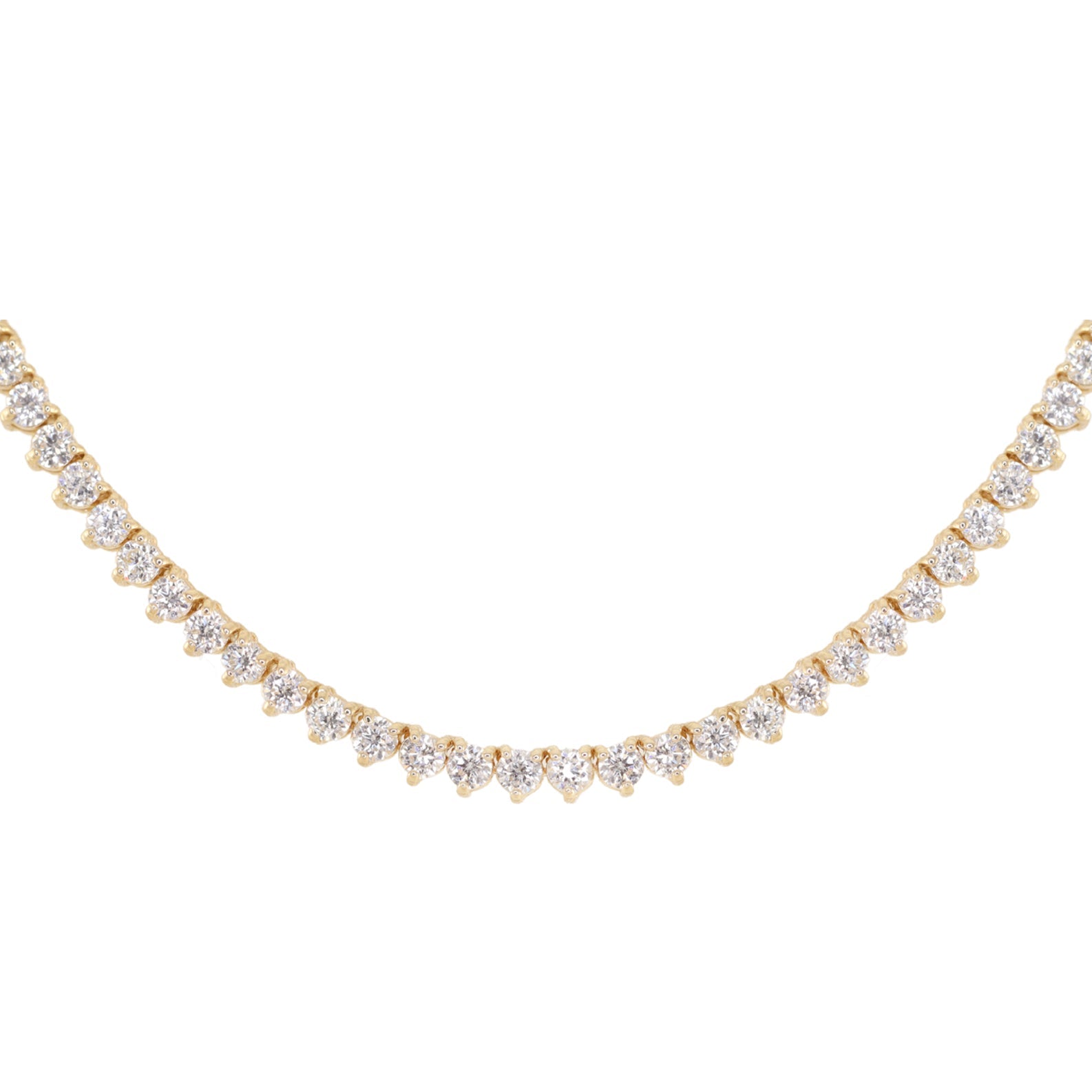 14kt gold and diamond classic tulip tennis necklace held by three prongs