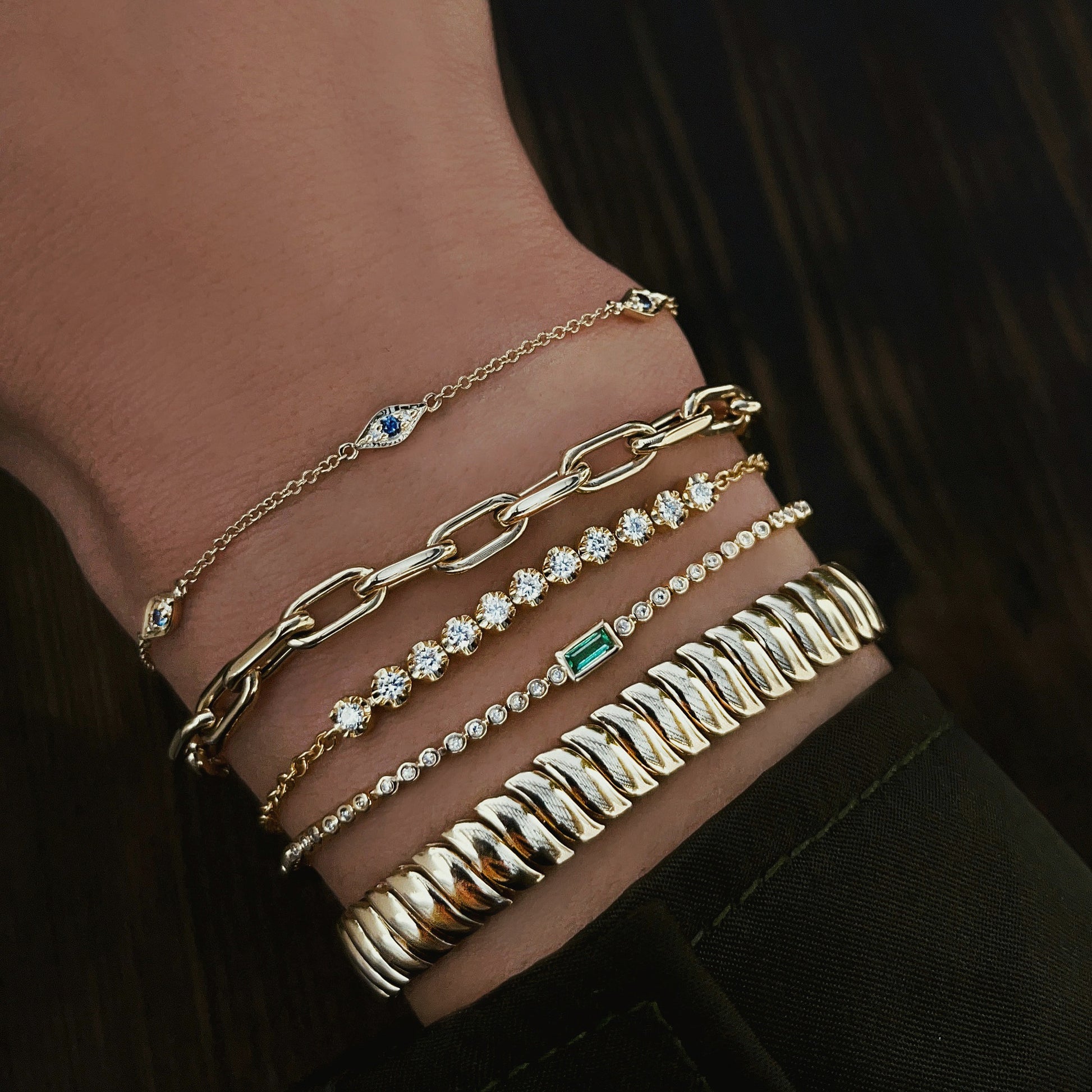 14kt gold and diamond evil eye bracelet