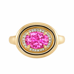 14kt gold and diamond pink spinel bubble ring