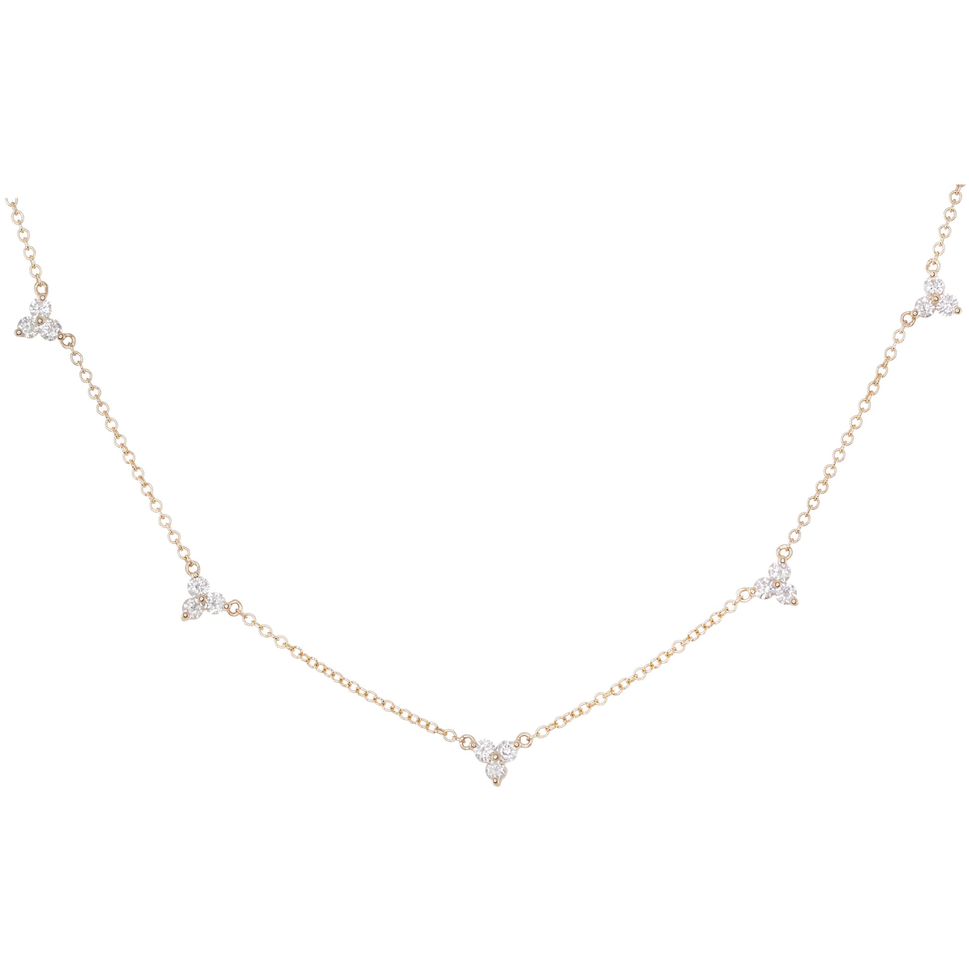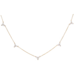 14kt gold and three diamond cluster necklace