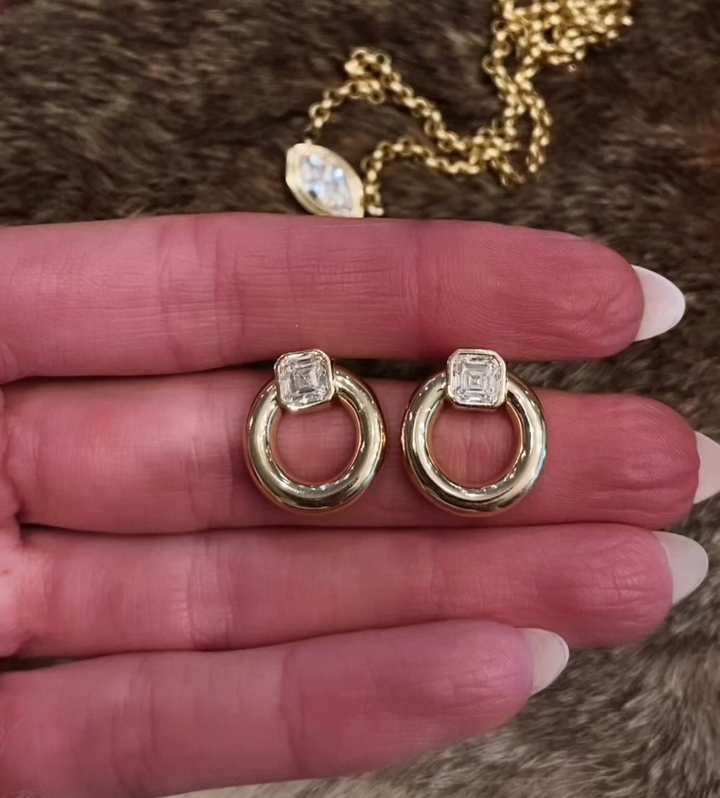 14kt gold asscher diamond knocker studs