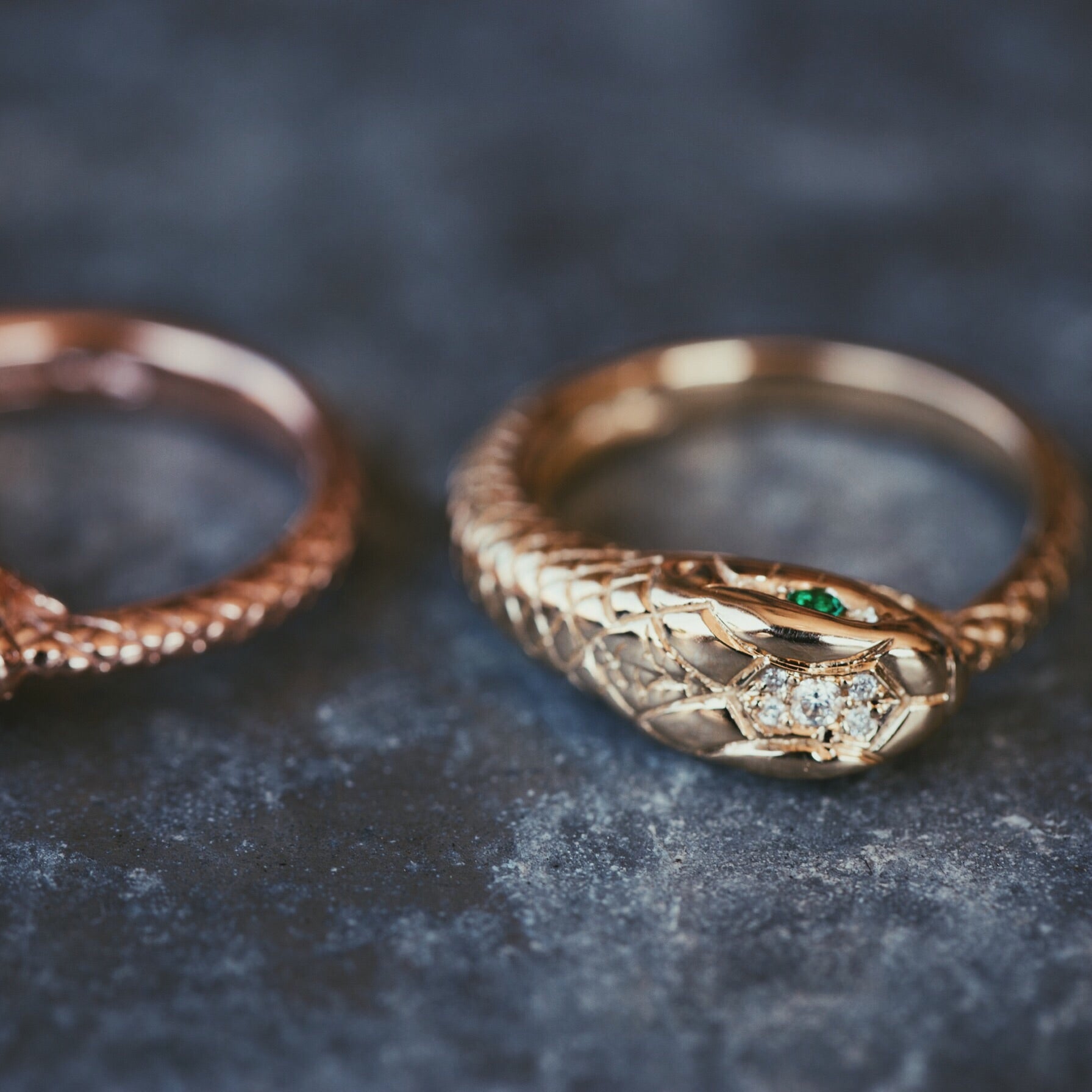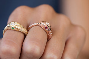 14kt gold and diamond head snake ring