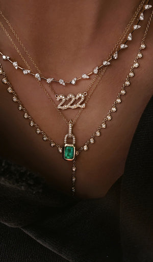 14kt gold full diamond bezel lariat necklace on adjustable 18 - 20 inch chain